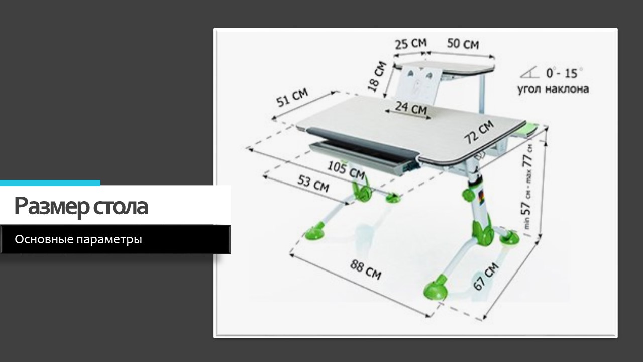| Угол наклона столешницы | 0-15 град. |